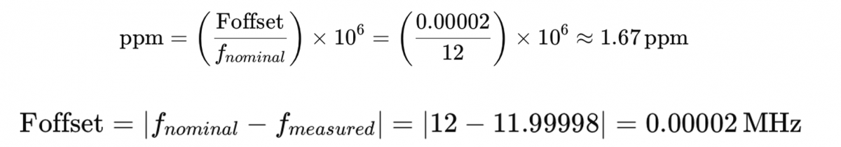 頻偏: 晶振輸出頻率和標稱頻率的差值。這個值由多種因素引起:溫度變化,電壓變化,負載電容變化。通常以ppm表示。假設(shè)晶振的標稱頻率為12MHz,測試頻率為11.99998MHz,頻偏為0.00002MHz。