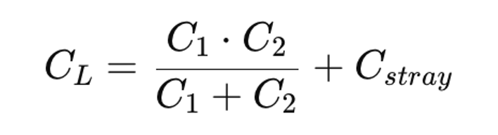 負載電容影響晶振的頻率穩(wěn)定性和起振條件。通過調(diào)整外圍匹配電容(C1, C2),晶振的工作范圍可以調(diào)到標稱值。CL1和CL2的作用是讓電路諧振并穩(wěn)定輸出,盡可能接近標稱頻率的頻率信號,通過過濾一部分高頻干擾雜波。