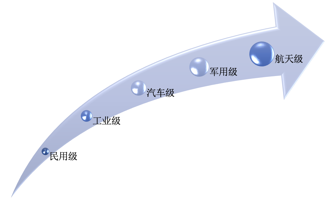 - 軍用和航天(-55~+125℃)對(duì)產(chǎn)品的質(zhì)量要求極高。