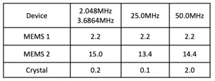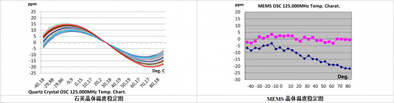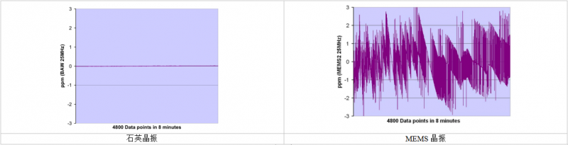 我們選取了同樣頻率的石英振蕩器和MEMS振蕩器進(jìn)行對比。