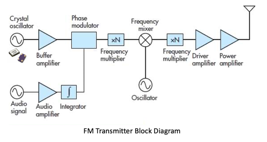 - 發(fā)射機(jī) (Transmitter):負(fù)責(zé)產(chǎn)生載波,將語音、圖像等信號進(jìn)行調(diào)制、濾波和放大,并通過天線發(fā)送。