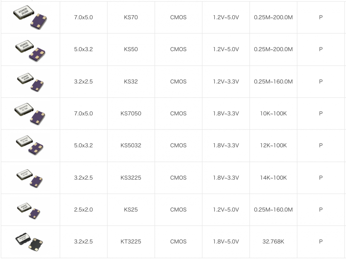 - CMOS 輸出時鐘振蕩器:KS20 / KS20W